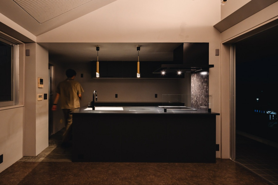海を望む大きな窓を活かし、キッチンとリビングをシックに一新。最新設備と収納力で使いやすさを向上し、昼は自然光、夜は照明で表情が変わる、非日常を感じる開放的な空間を実現しました。