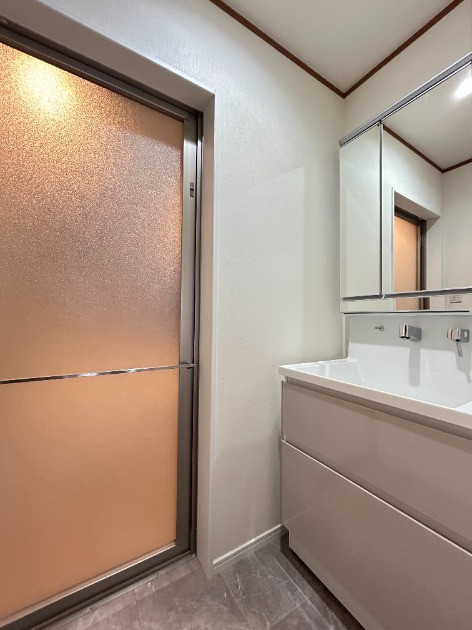 引出式と三面鏡で収納力もアップして、全体的につなぎ目や凹凸が少なくお掃除し易そうです。