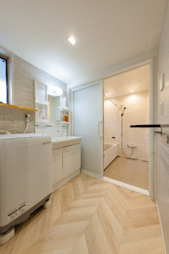 お風呂に合わせて、明るい女性らしいインテリアを提案しました。