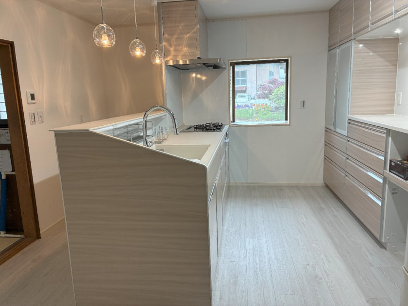 【キッチンリフォーム】収納たっぷりの明るいキッチン