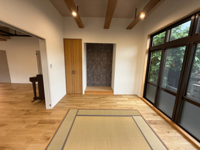 今後生活する中で植栽やテーブルの色の選定も行いやすい開放的な住宅になったと思います