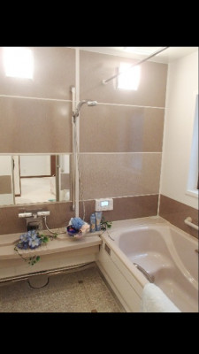 浴室は、インペリオ。最高峰の素材鋳物ホーローで「のんびり半身浴槽」を採用しました。一日の疲れを癒すくつろぎの空間を提案しました。