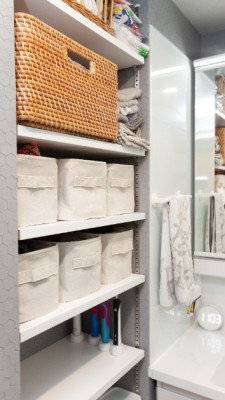 吊り戸をなくし、キッチンで作業している最中でもお子さんの様子が常に確認できるよう以前のI型から2列型をご提案しました。