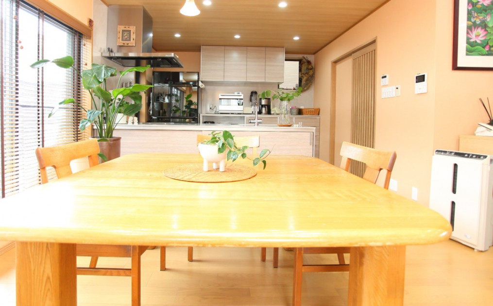 我が家のLDKは2階にあります。でもキッチンは仕切られていて暗く、リビングの様子が見えづらい位置にありました。今回Midoriさんでリフォームして、とても明るく開放的なLDKになりました。大切に育てている観葉植物が一層輝いて見えます。