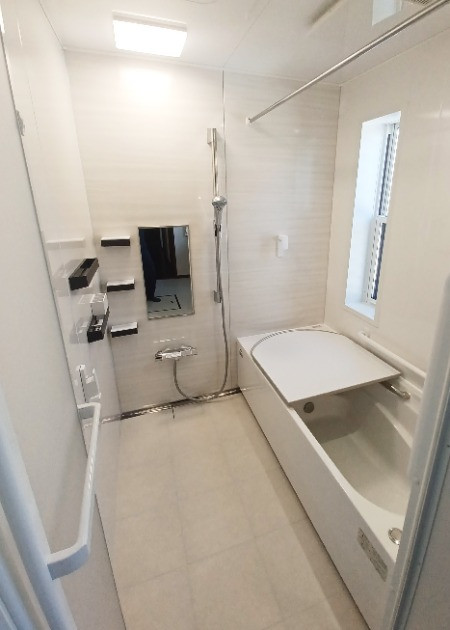 また、浴室に入ってすぐのところに手すりを取り付けています。