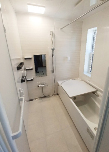 洗面所から濡れた浴室へ安全に移動できるようにと、お客さまにご提案させていただきました。