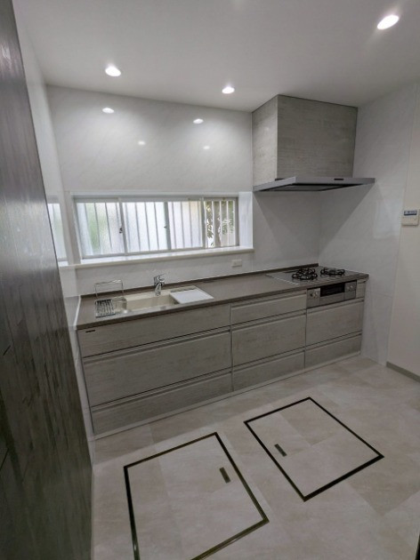既設の吊戸棚を全て撤去し、台所がすっきり広々と感じる空間となる様にリフォーム致しました!