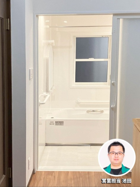 以前の浴室はタイル風呂で広い浴室でした。冬は特に寒かったです。身体のことを思い、暖かいお風呂にしたいなと考え浴室リフォームをしました。あと、親が介助を必要としており、介助のし易い広いドアにしたいと思いました。リフォームをして一番感動したことは、暖かいお風呂になったということです。