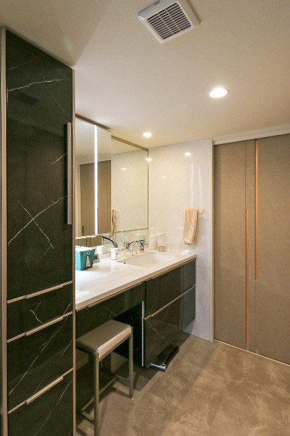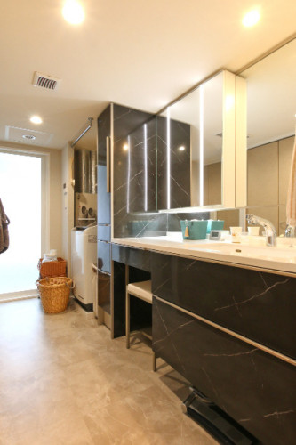 ボウルは1つに変更し、メイクなどに使えるカウンターを兼ね備えた洗面化粧台。