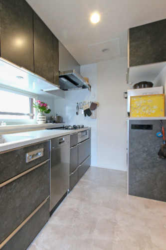 ゴミ箱収納も確保でき、キッチン全体の広さは変えていないものの収納力も上がり使い勝手の良い“家事らくな”空間に。