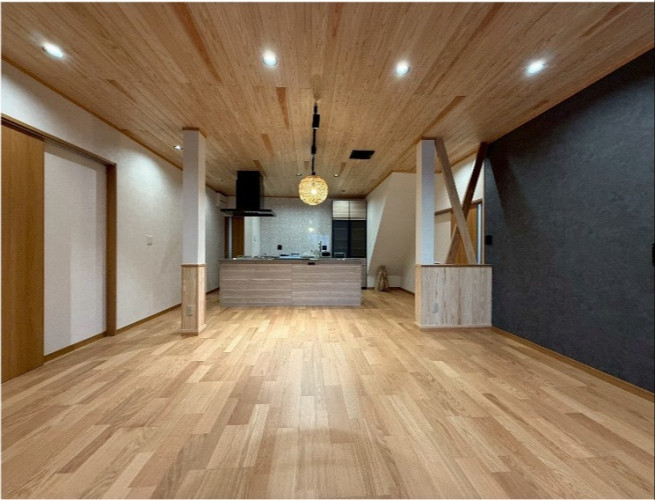 家族が集まるリビングは、開放感たっぷりの広々空間に。キッチンからリビング全体が見渡せ、自然と会話も増えます。