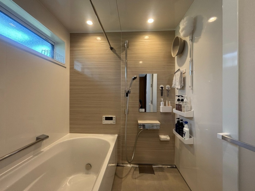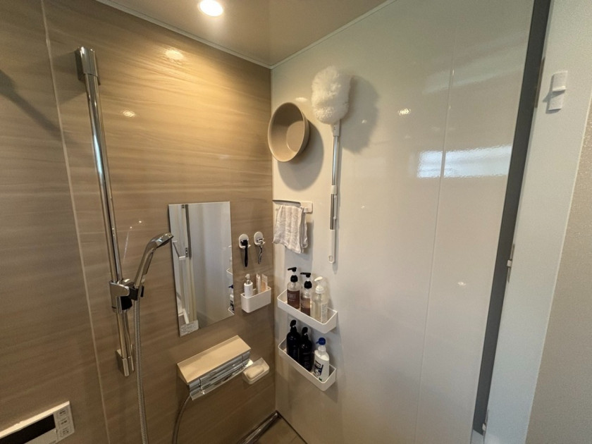 浴室には、収納の位置を自由に変えられるマグネットパネルを採用。浮かせる収納で清潔を保ちやすく、使い勝手も抜群です。