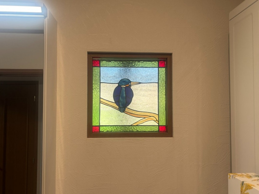 洗面室にはお気に入りのステンドグラスを入れてもらい、光が差し込むたびに嬉しくなる空間になりました。