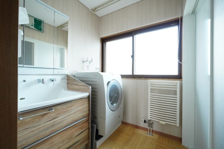 洗面化粧台を新調した他、壁紙と床材を新しくしました。