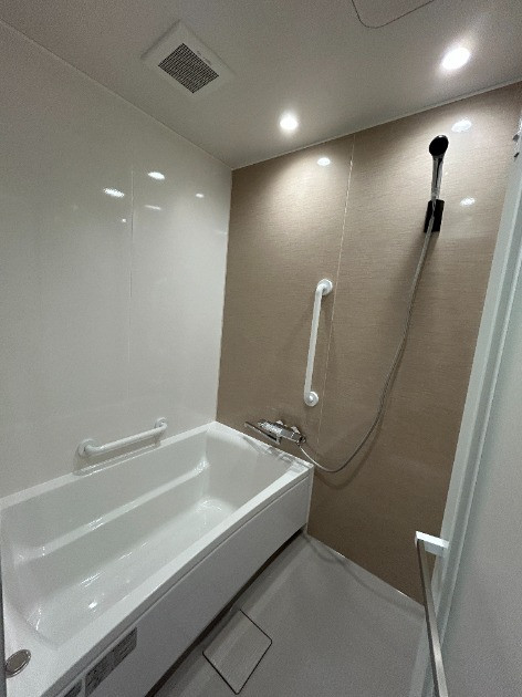 防犯と寒さ対策を兼ねて、窓無しのユニットバスとなりました。