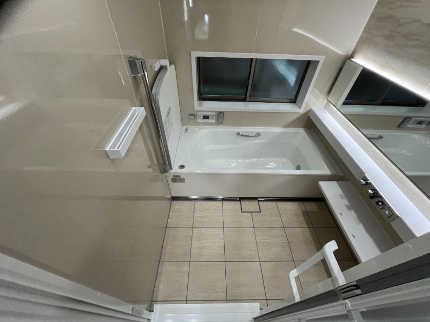 浴室の出窓が浴槽の高さにあわせた作りでユニットバスに入れ替えた時に低すぎて窓をなくす案も出たのですが、一戸建て住宅なのでやっぱり窓が欲しい思いを実現するため、調整してもらいました。お風呂工事をする前にユニットバスへの交換を見据えて給湯専用からフルオートタイプ・ソーラーパネルとの連携も兼ね備えた給湯器への交換を先に準備もしました。