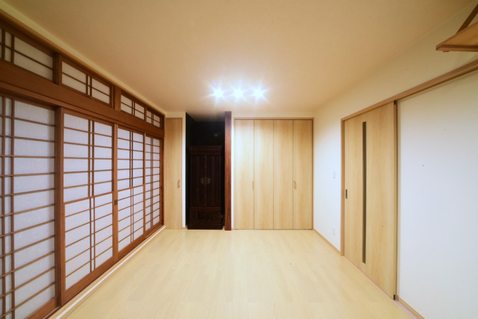 仏間を小さくして、収納は天井まで使えるようにしました。