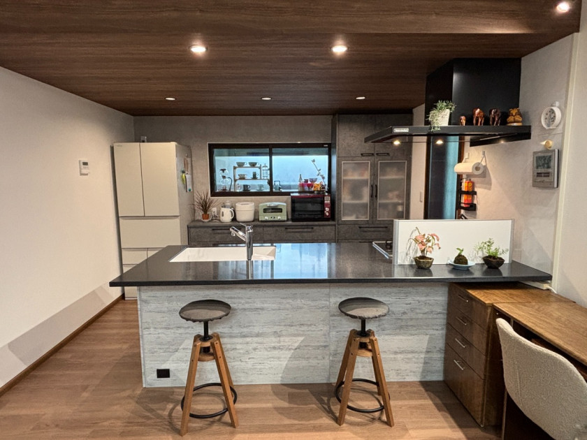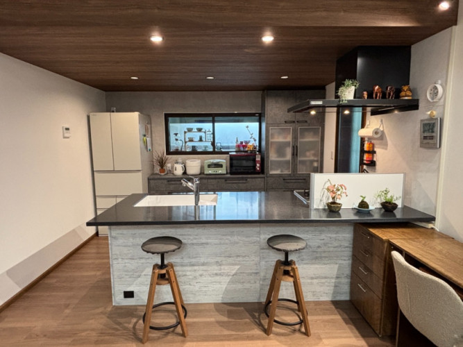 築30年を迎えるにあたり、北向きのキッチンや家事導線に不便に感じており、どうにか解決できないかと今回リフォームの相談をさせていただきました。明るく、開放的なキッチンスペースにできればいいなと希望を伝えたところ、担当の今村さんが3Dパースを利用しながら丁寧に説明してくれたので完成後がイメージしやすかったです。まさか憧れていた対面キッチンが実現できるとはびっくりです。カフェのようなとても素敵な空間に仕上げていただき、これからの生活がとても楽しみになりました。ありがとうございました。