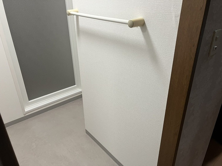 クロスとクッションフロアを浴室の色味に合わせることで、統一感のある脱衣室に仕上げました。