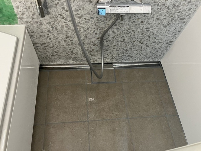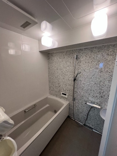 マンションの1室という限られたスペース内で、お客様に広々と使っていただくために、現調を綿密に行い既存の浴室よりサイズを大きくすることができました。また、浴室入口のまたぎの高さを下げることでより安全な浴室に仕上げました。