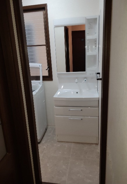 浴室リフォームと合わせて脱衣場もまとめてリフォームでお得です。