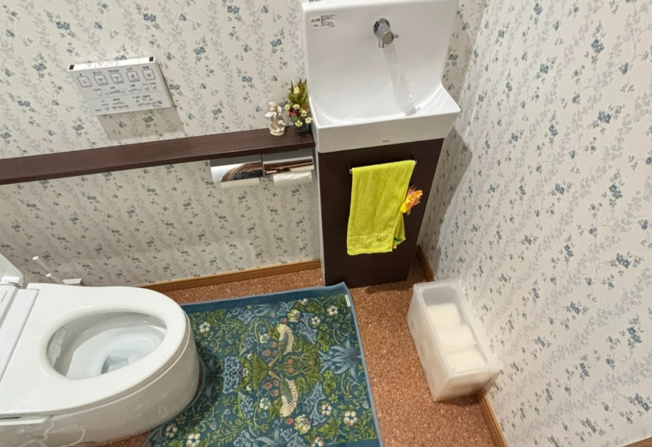 トイレは以前に変えたばかりなので、クロスと棚を新しく変えてもらいました。