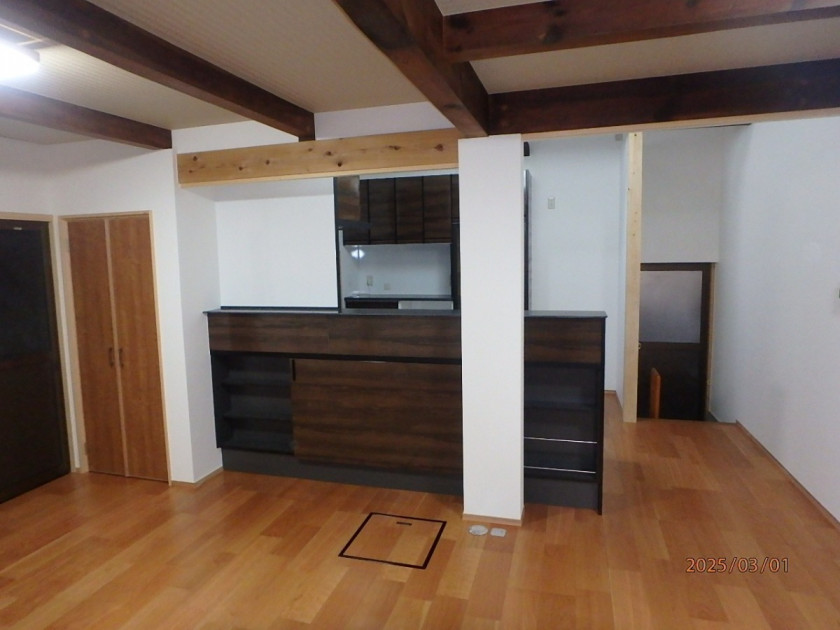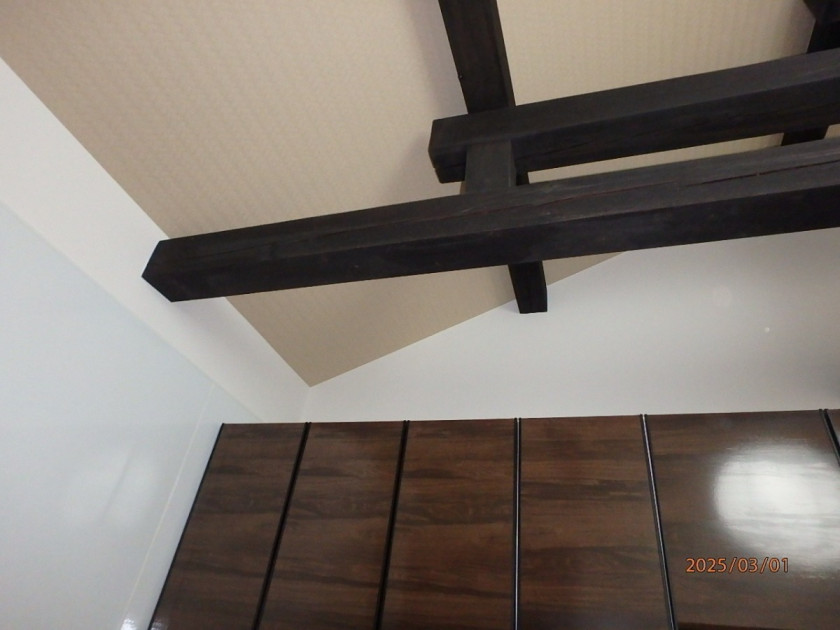 既存の梁を残しつつ磨き・塗装することで、昔の面影を残しつつ居住性の高いデザインを実現。