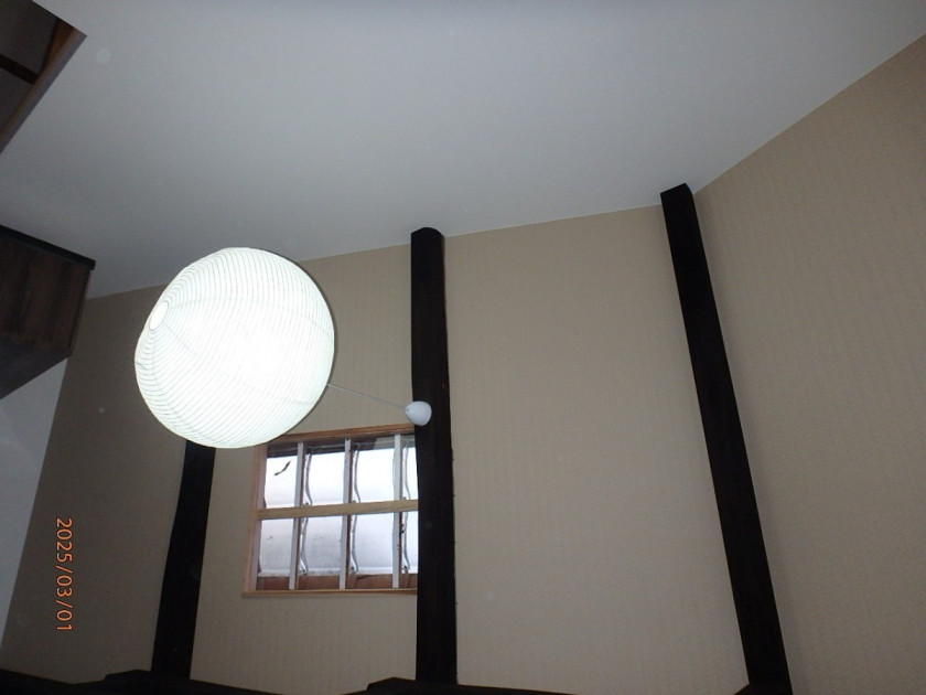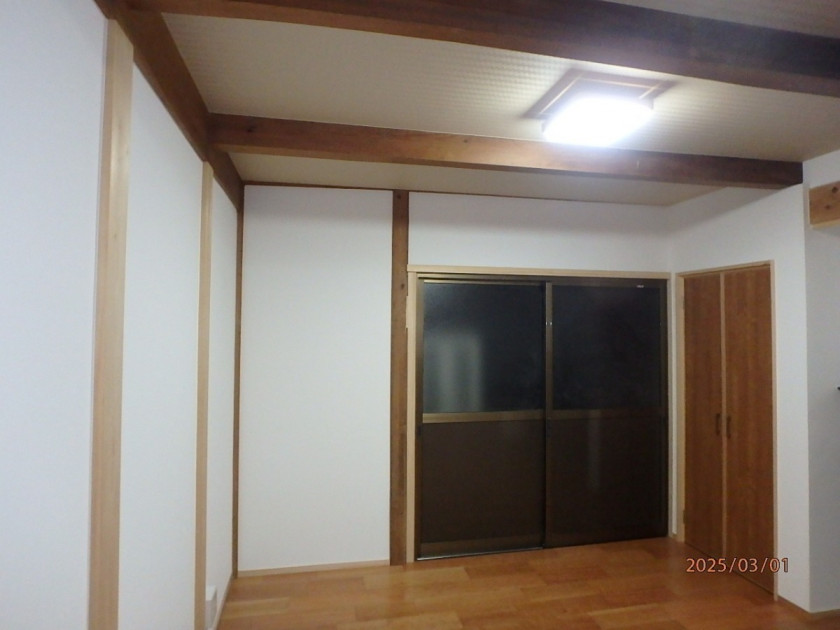 土壁の居間は収納もないため、断熱材を施し天井・壁・床全てを刷新。