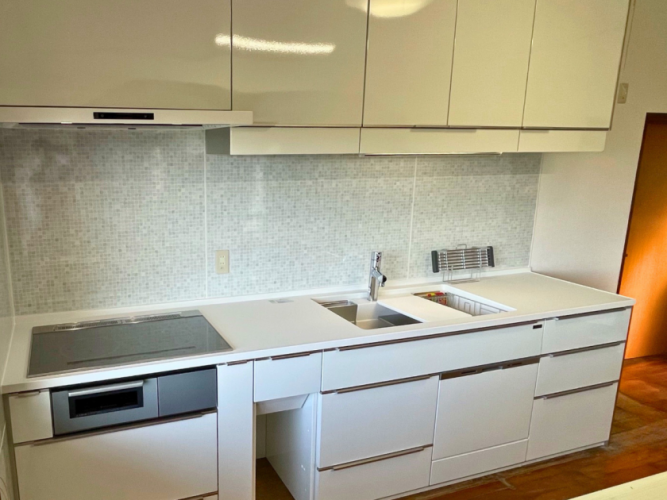 以前のキッチンは造作が見事なダークブラウンのキッチンでしたが、経年劣化のためタカラスタンダードのレミューにリフォームしました