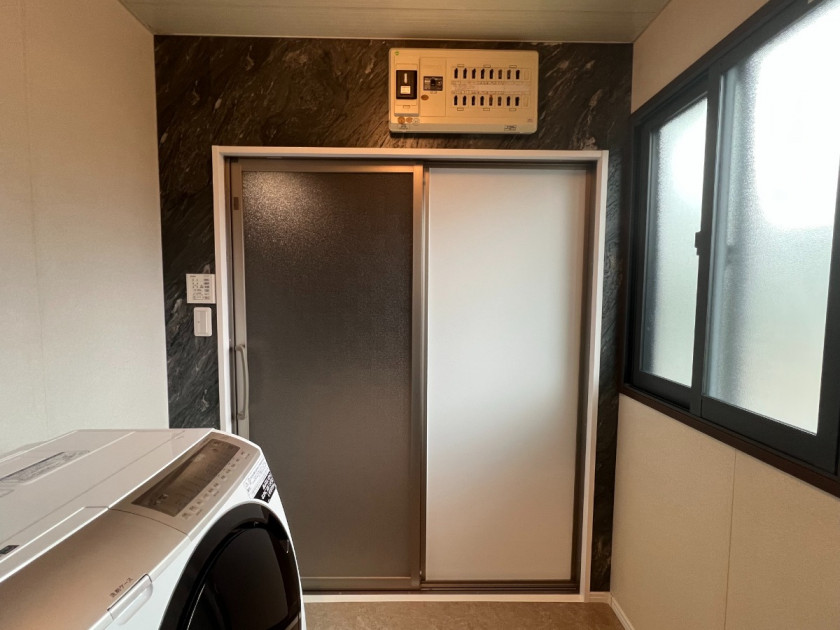 脱衣室の形状を考慮し使いやすさを追求する為、引戸を壁から離し