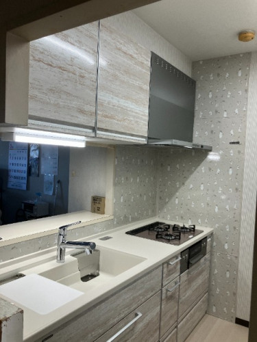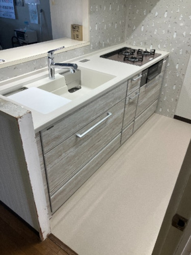キッチンリフォームに合わせて、水・湿気に強いクッションフロアに張替をしています。