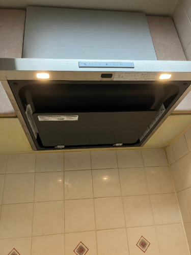 25年以上お使いのレンジフードの弱が使えなくなってしまったので、お手入れのしやすいレンジフードに交換希望とのことでした。