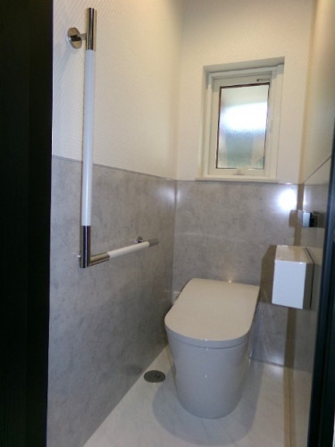 給水配管のやり替えやトイレ本体をタンクレスタイプにすることで以前よりも広々とスッキリしました。