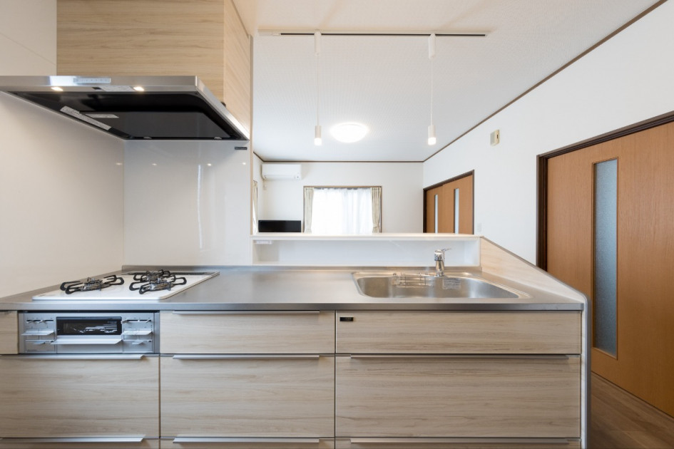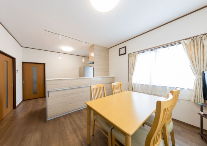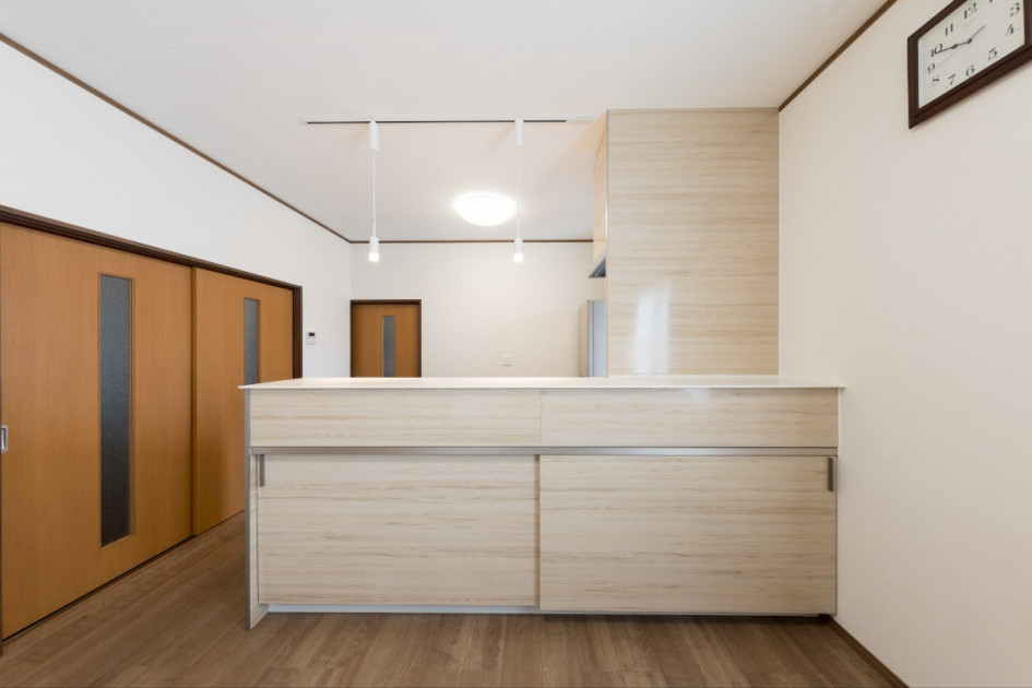 まず着手したのは水廻り。トイレの向きを変えてレイアウトを見直し、空間の有効活用を図りました。生まれた余白は浴室スペースへ。足を伸ばして入浴できる、ゆとりある空間が誕生。リビングは小上がりをなくしてフラットに。段差のストレスがなくなり、どこにいても居心地の良いひと続きの空間に変わりました。窓も断熱性・遮熱性に優れたものへと刷新。冷暖房効率の向上で、快適に過ごせます。そして、キッチンは待望の対面式に変更。壁・天井・床には断熱材をたっぷりと充填し、住まいの基本性能を大幅に向上させています。