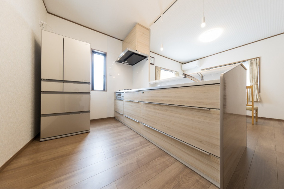 そして、キッチンは待望の対面式に変更。テレビを見ながら夫婦で会話を楽しみ、ゆったりと料理ができる空間へ。壁・天井・床には断熱材をたっぷりと充填し、住まいの基本性能を大幅に向上させています。