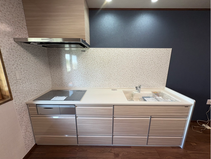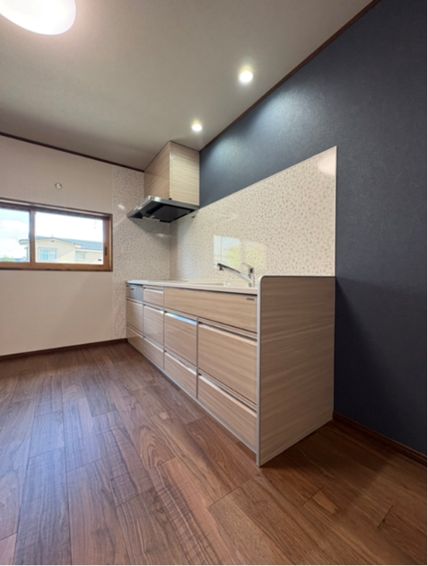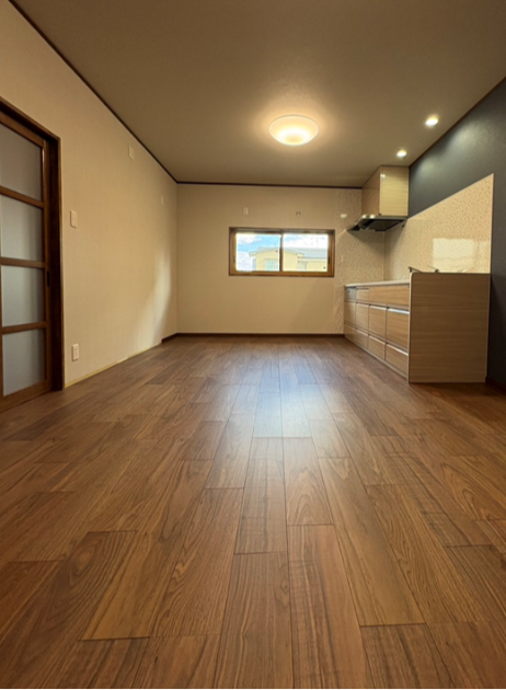 元々キッチンがなかった部分に新たにキッチンを設置しました。LDKを一纏めにして家事動線をスッキリとさせた事によって、家族が集う空間になりました。