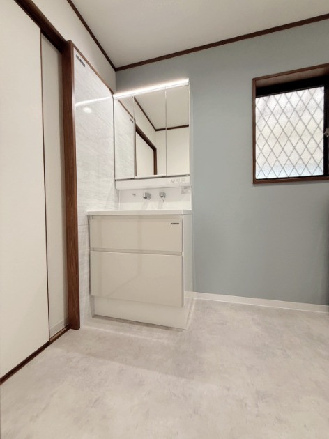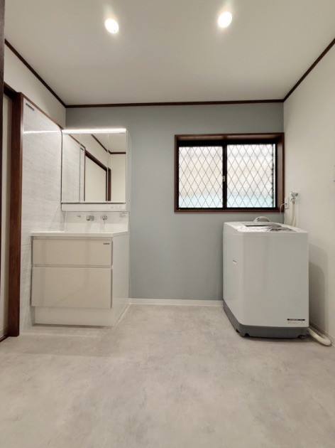 洗面も新しく、床壁天井まで室内全体を空間コーディネート。