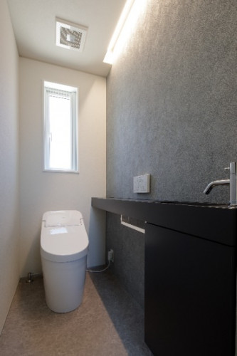 1面のアクセントクロスと手洗いカウンターがいいアクセントになっています。