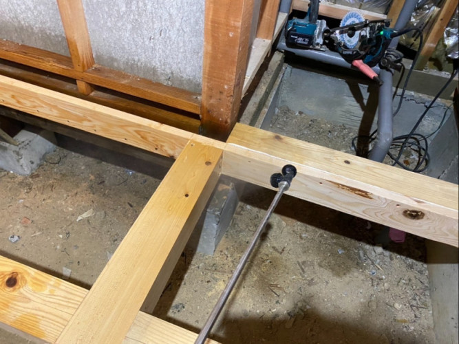 洗面脱衣室床組みには防腐・防蟻・防カビ対策として、人体に害のないホウ素系防蟻防腐剤エコボロンPROを塗布することで床下環境も改善、