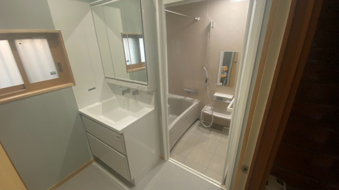 昭和のタイル張りお風呂からシステムバスに 洗面脱衣室も快適リフォーム 機能性アップ お手入れ簡単 補助金対応
