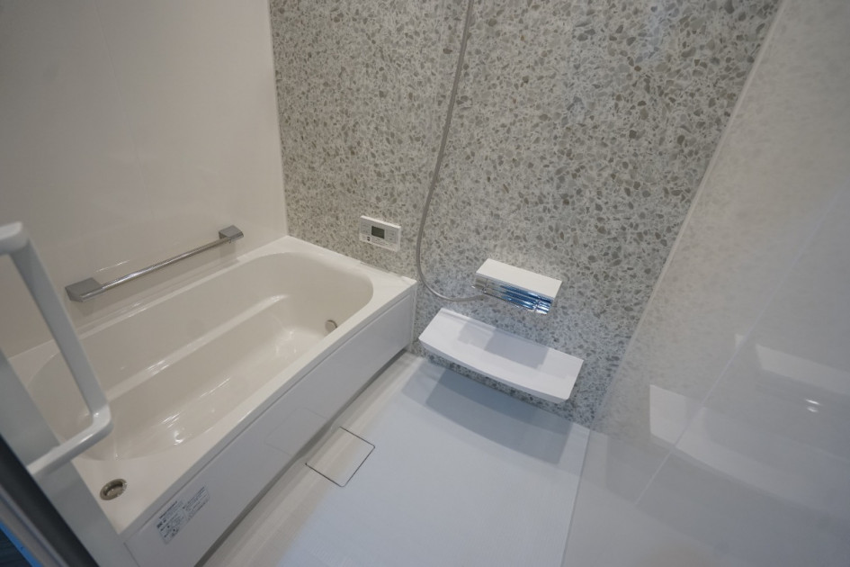 鏡や窓はつけずにすっきりとした浴室空間にリフォーム。
