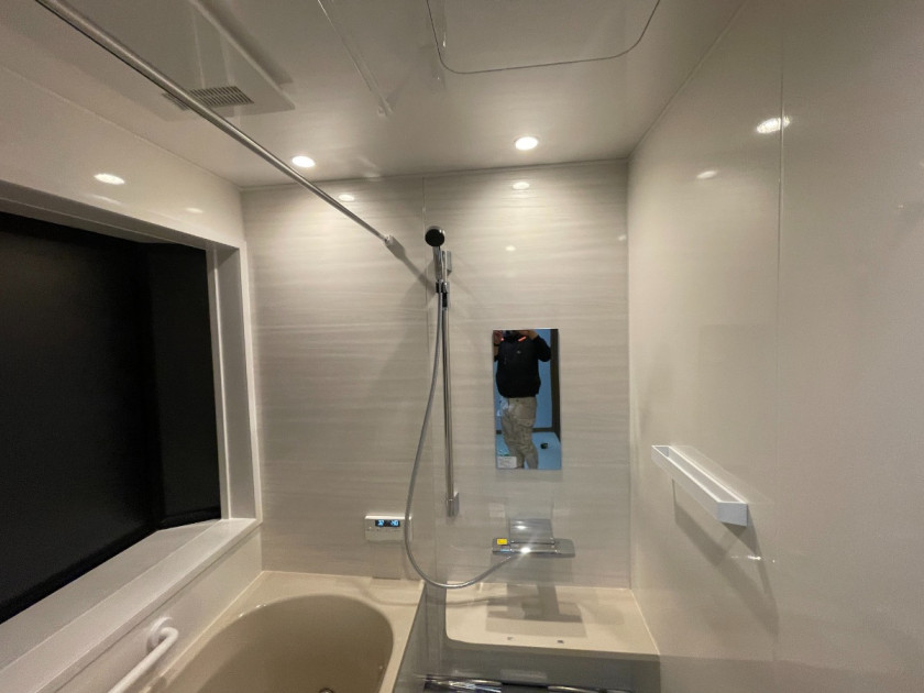 ユニットバスからユニットバスへのリフォームは、養生 → 解体 → 設備工事(配管・電気) → NEWユニットバス搬入・組立 → 内装・仕上工事 → 養生撤去・清掃・引渡しの順に進みます。工事期間は製品やオプションにより異なりますが、3日程度で工事が完了しました。