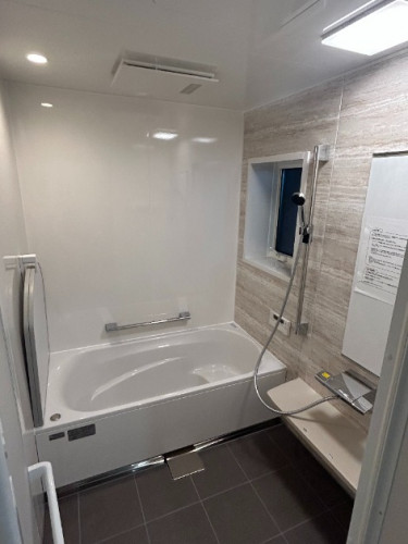 浴室を解体したあと床下配管のやり替えをし、構造材の腐食箇所も取替をしました。窓の入替+劣化していた外壁面の断熱材の入れ直し+タカラスタンダードのユニットバスにすることでさらに浴室がさらに暖かくなりました。