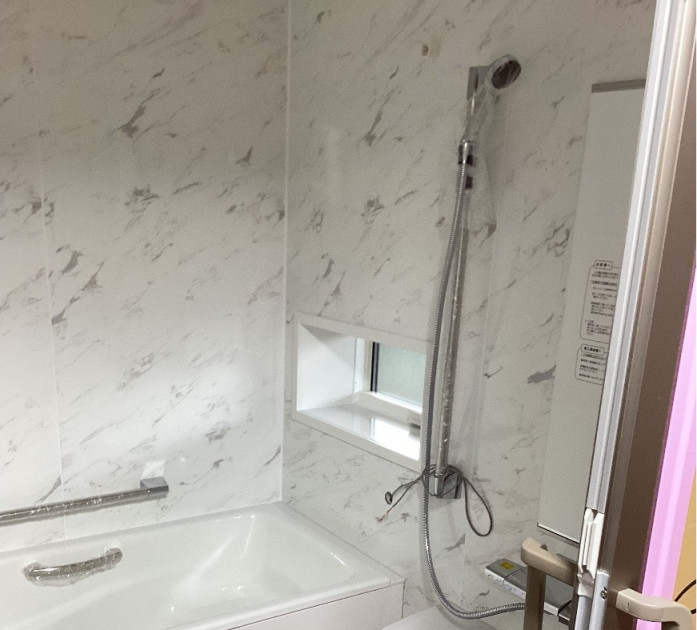 タイルのお風呂から最新のシステムバスへリフォーム。 暖かい浴室へとリフォームされました。
