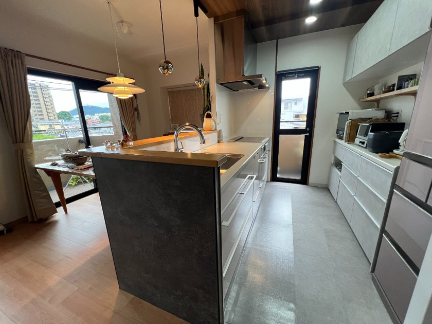 ご要望を解決するためにシステムキッチン『レミュー』を採用いただきました。仕様決めの際は家族みなさんの視点でSRど実物をご確認いただきました。