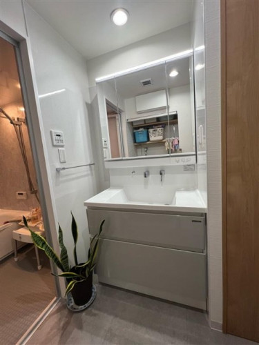 システムバスを奥へできる限り設置をして、間仕切り壁を従来より薄くすることでゆとりのある空間を実現しています。