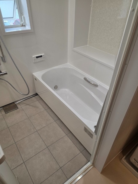 元々の浴室は柱型があるハーフユニットのお風呂でした。システムバスに替えると柱の分が狭くなるので、その狭くなるデットスペースに当社でニッチを作成し、できる限り無駄のないシステムバスを設置しました。