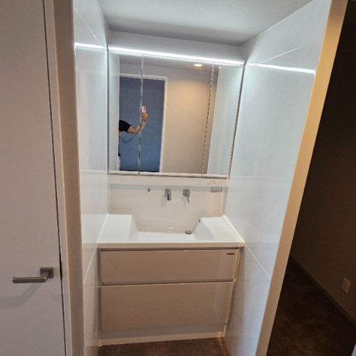 元々は洗面脱衣室に洗面化粧台があったが、玄関に入ってすぐに手を洗えるよう廊下に設置した