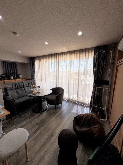 リビングの床もカーテンも全て交換されました。交換に伴い、家具も一層されとてもいいリビング空間になり、お喜び頂きました。