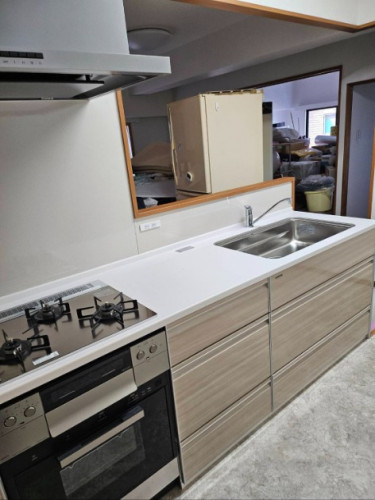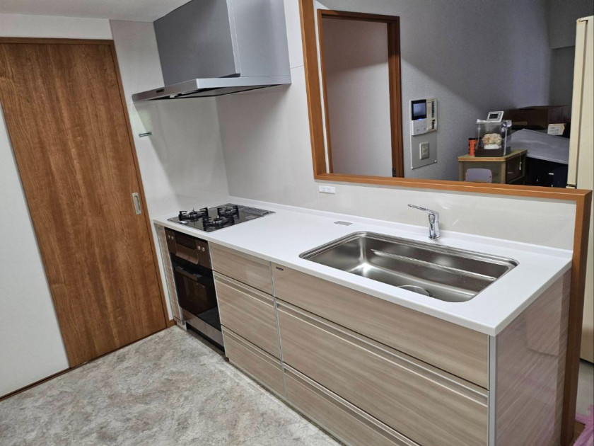 タカラ様とのショールームイベントにいらして頂き、その後何度も現調・お打合せを重ね、施行の運びとなりました。キッチンは背面型からトレーシアのI型を施工いたしました。